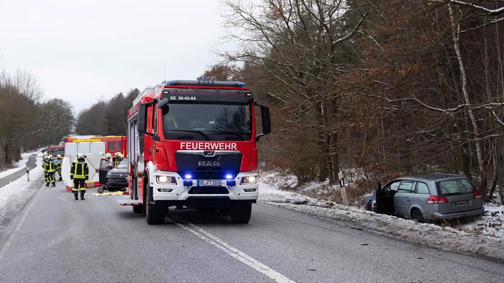 Am heutigen Donnerstagmittag, des 29.01.2026, kam es auf der Bundesstraße 206 zwischen den Ortschaften Bark und Wittenborn im Kreuzungsbereich Segeberger Straße zu einem Verkehrsunfall mit mehreren beteiligten Personenkraftwagen.