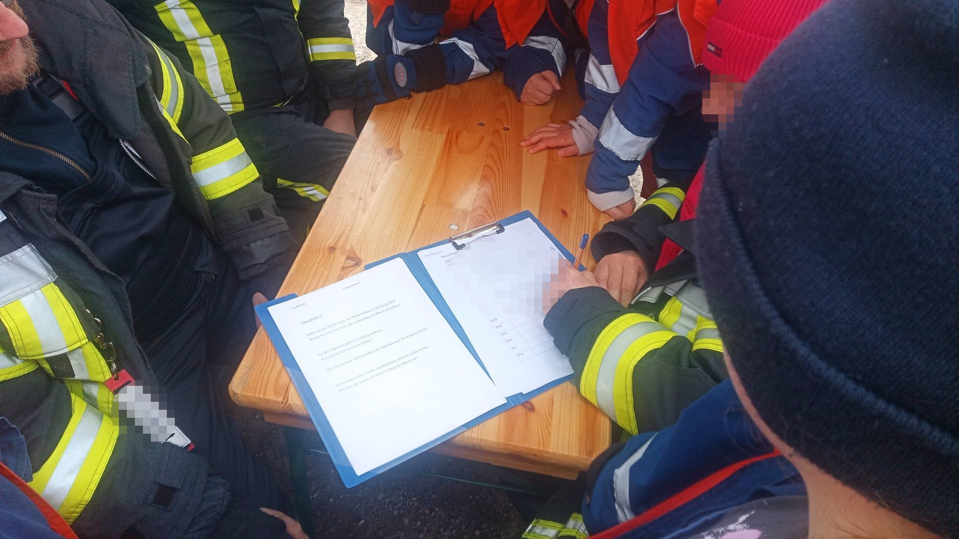 Im 5-Minuten-Takt starteten so auch die weiteren Gruppen, mit ihren Laufzetteln, in Richtung Wald und Wiesen. Während ihrem Weg zu der ersten Station mussten schon einige Fragen, gemischt aus Fragen zu der Umgebung und Scherzfragen, beantwortet werden. An der ersten Station, war gleich das Feuerwehr-Fachwissen der Jugendlichen gefragt. Innerhalb 90 Sekunden, mussten die Jugendlichen hier Feuerwehrabkürzungen richtig übersetzen und aufschreiben. Als Beispiel: Vorgegeben war die Abkürzung ,,LF“, so musste als Antwort daneben ,,Löschgruppenfahrzeug“ stehen.