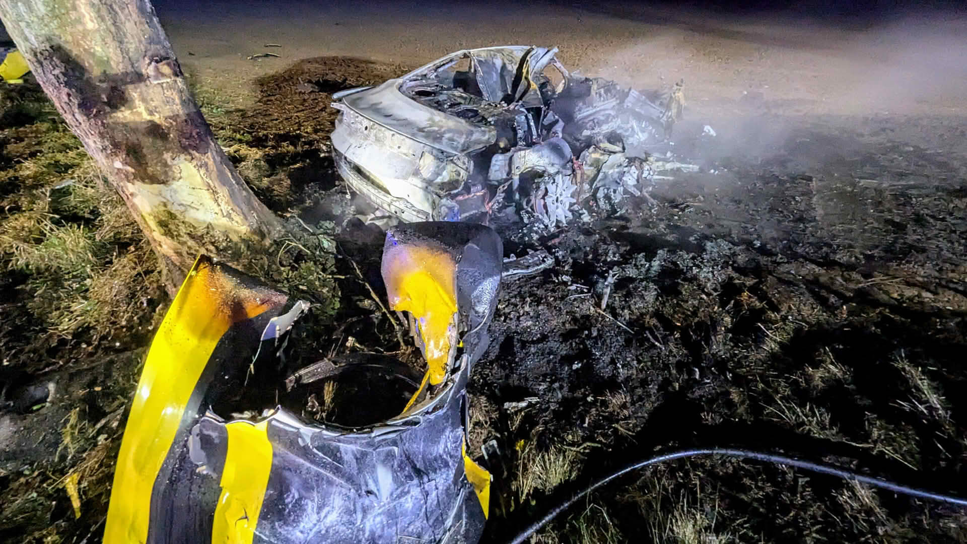 Beim Eintreffen der Feuerwehr stand ein Pkw, der zuvor gegen einen Baum geprallt war, in Vollbrand. Eine Person befand sich noch im Fahrzeug eingeschlossen, zwei weitere Personen wurden im Nahbereich liegend aufgefunden.