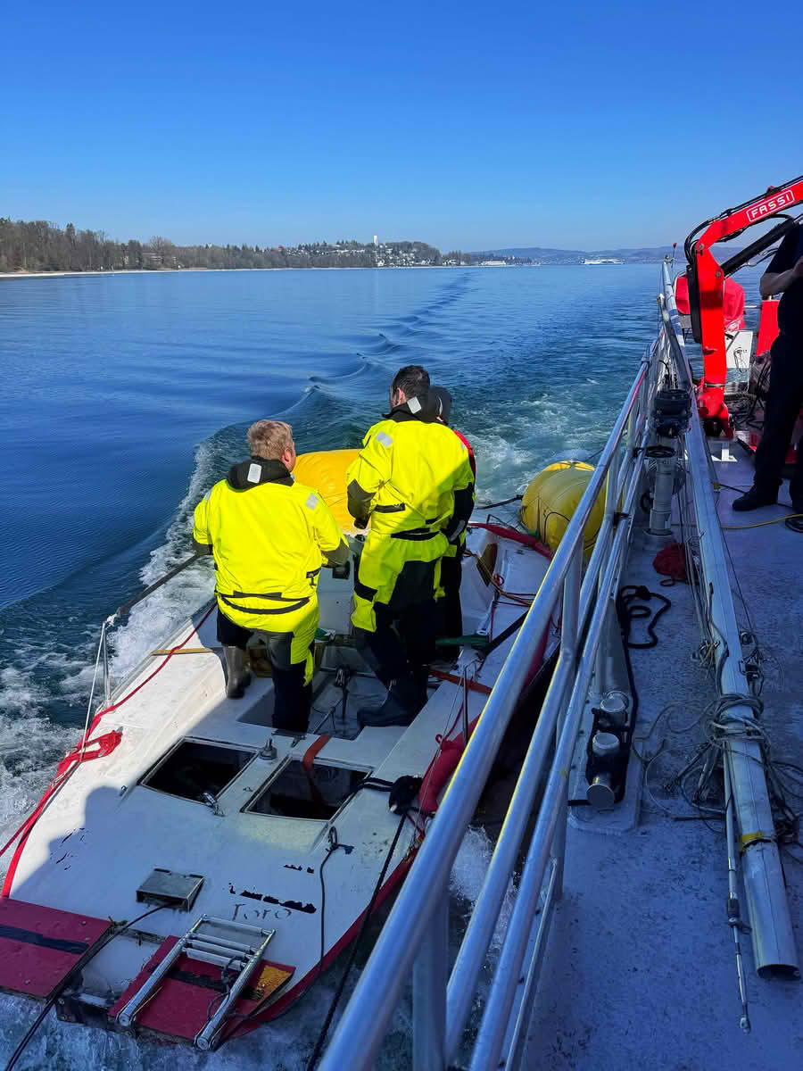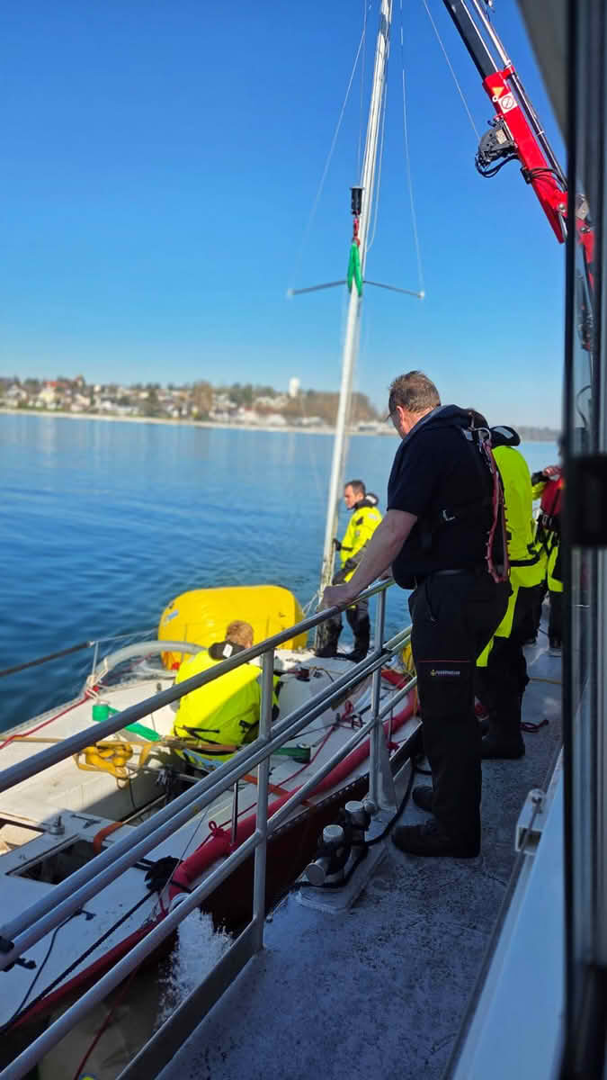Durch den starken Ostwind am Anfang der Woche wurde in einem Bojenfeld vor der Hoheneggstraße ein Segelboot losgerissen und ins Flachwasser getrieben. Da zum Zeitpunkt der Havarie eine Bergung aufgrund des starken Wellengangs nicht möglich war und der Wind sowie der Wellengang laut Wettervorhersage noch andauern würden, wurde nach Rücksprache mit der Wasserschutzpolizei (Wapo) und den Bootseignern eine Bergung für Samstagvormittag 04.05.2025 geplant.