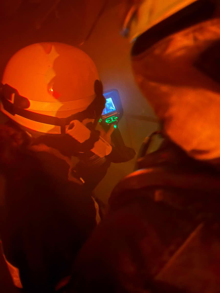 Neben der Personensuche unter Atemschutz standen verschiedene Suchtechniken sowie das Setzen eines Rauchvorhangs und das sogenannte Türmanagement zur Brandraumöffnung auf dem Ausbildungsplan. Auch im Außenbereich wurden weitere Einsatzmöglichkeiten präsentiert, darunter der Aufbau eines vollständigen Löschangriffs sowie das Einsetzen tragbarer Leitern.