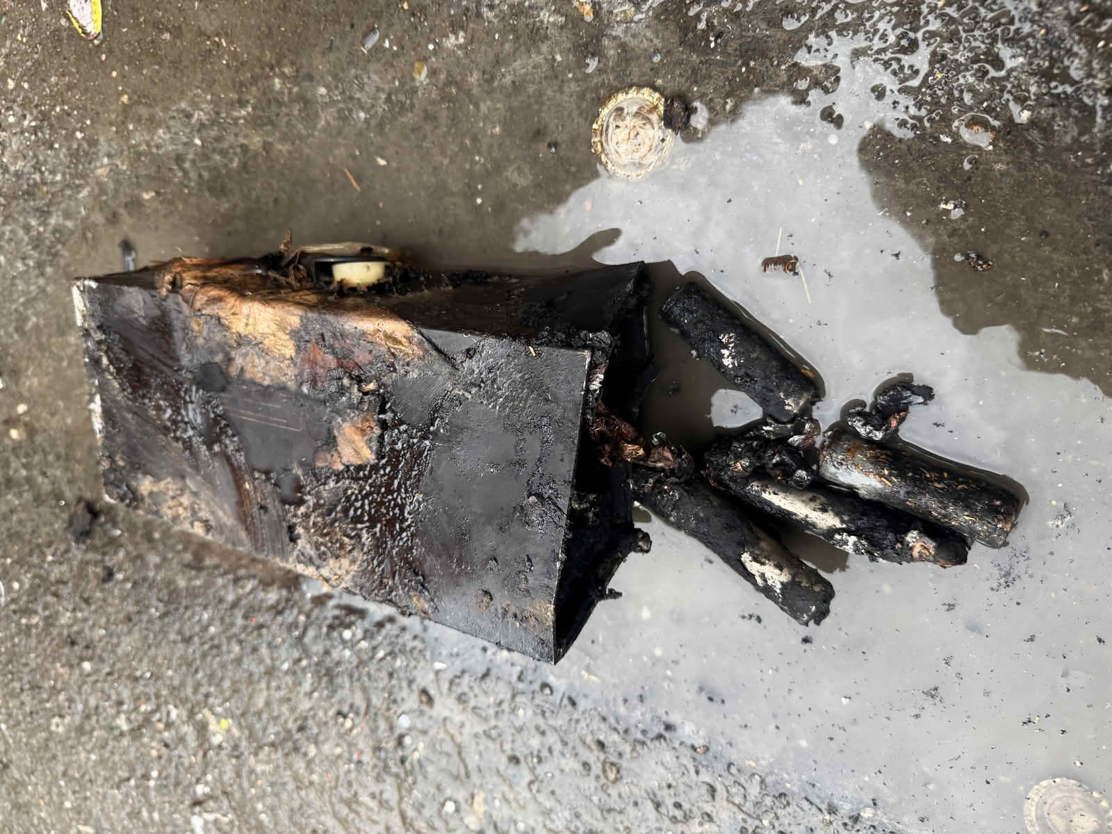 Dieser sowie einige Sperrholzplatten, die ebenfalls bereits glimmten, wurden vom restlichen Müll separiert und vom Entsorger gewässert sowie gekühlt.