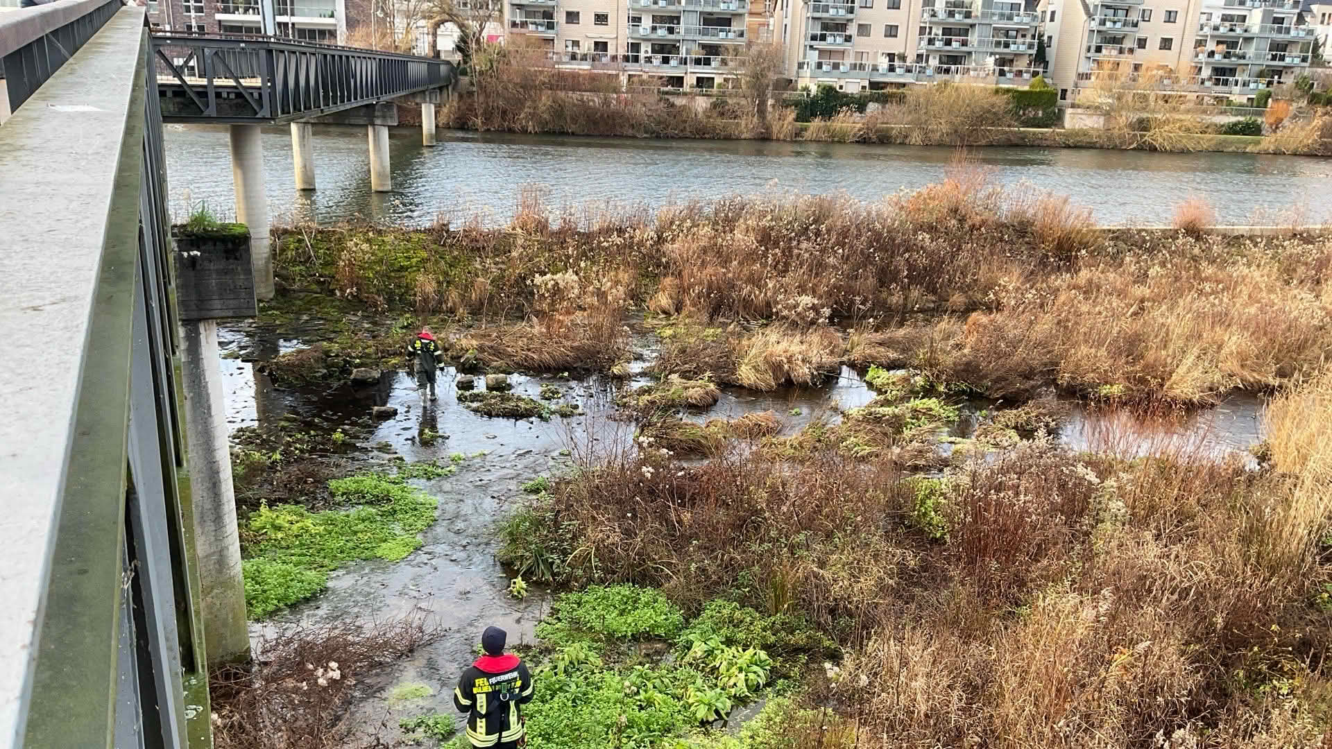 Am heutigen Mittag gegen 12:45 Uhr wurde der Leitstelle der Feuerwehr Mülheim an der Ruhr eine unklare Verunreinigung eines Gewässers im Bereich der Kassenbergbrücke gemeldet. Passanten hatten einen schillernden Film auf der Wasseroberfläche bemerkt und den Austritt von Öl oder Kraftstoffen befürchtet.