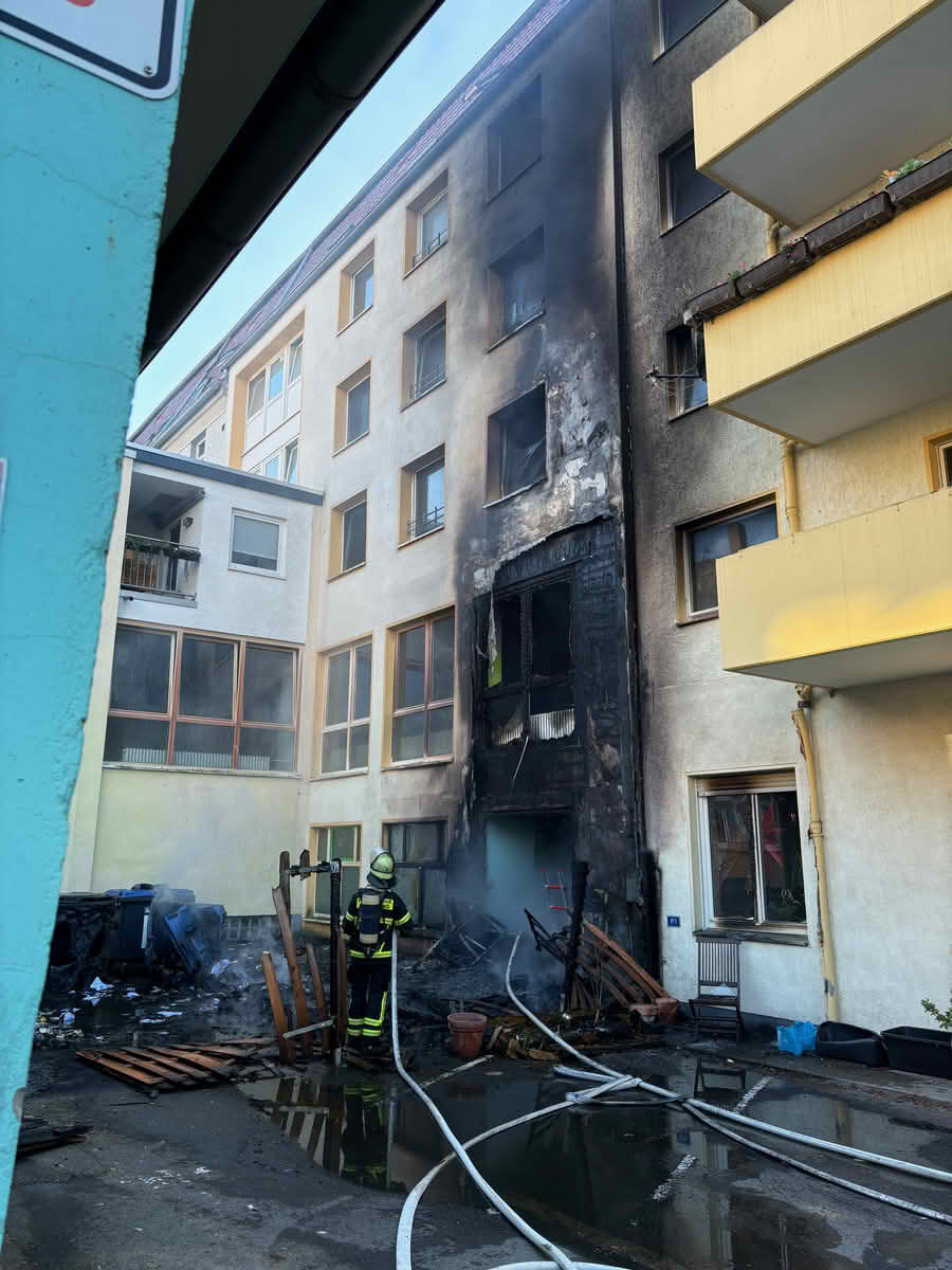 Gegen 17:00 Uhr wurde die Feuerwehr in die Dortmunder Nordstadt alarmiert. An der Oesterholzstraße kam es im Hinterhof einer Jugendhilfeeinrichtung zum Brand mehrerer Müllbehälter. Das Feuer griff auf die Fassade der Einrichtung über. Es wurde niemand verletzt. Bei Eintreffen der Einsatzkräfte von Feuerwehr und Rettungsdienst standen Teile der Fassade im Hinterhof bereits in Brand.