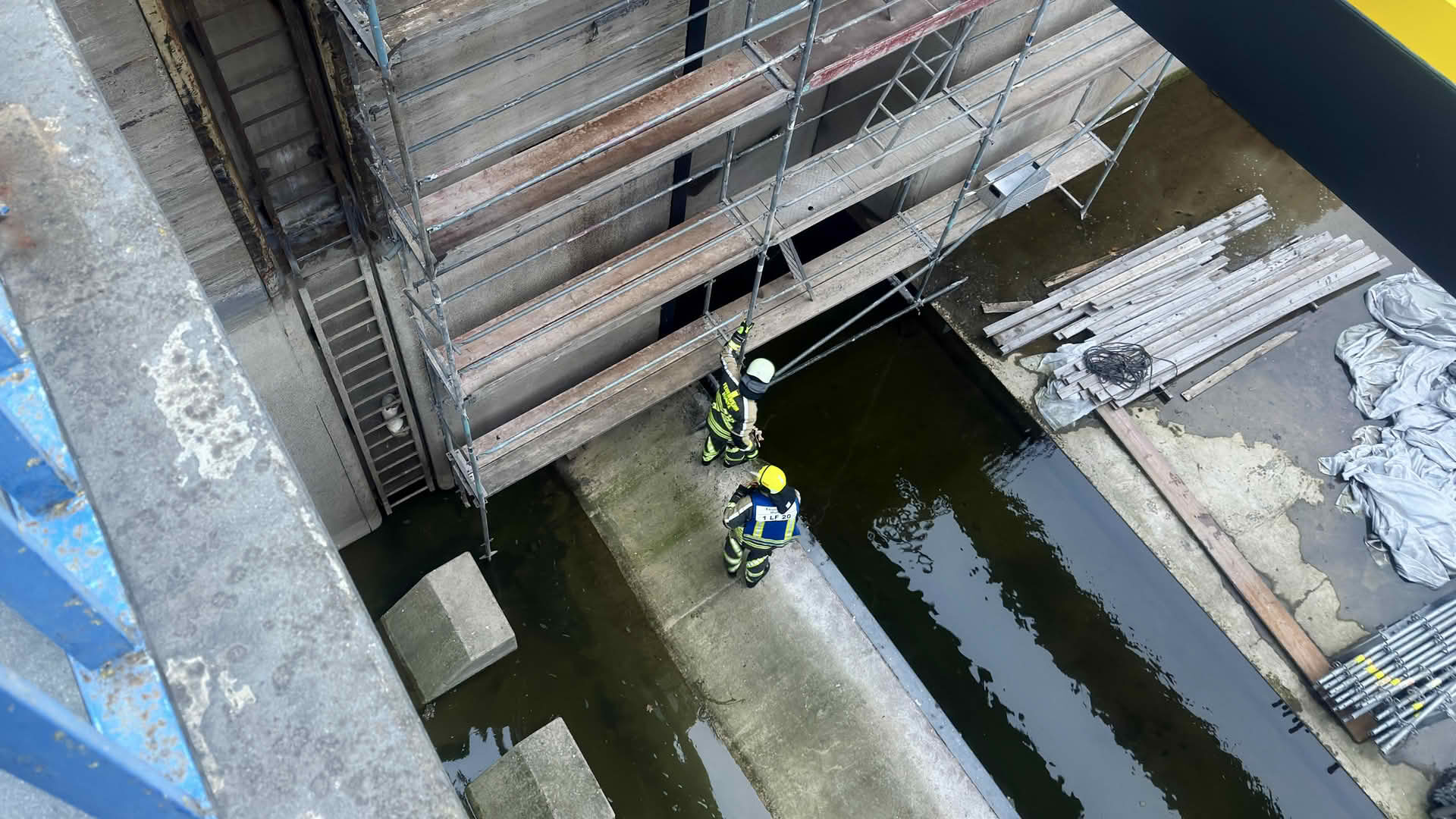Da sich circa 60 Zentimeter Regenwasser in dem Bereich angesammelt hatten, rüsteten sich die Einsatzkräfte mit Wathosen aus. Über ein Baugerüst stiegen sie in die Schleusenkammer herab. Die Katze ließ sich ohne Gegenwehr aus ihrer misslichen Lage befreien und in eine Kiste setzen. Sie war augenscheinlich unverletzt und wurde über das Gerüst hinausgetragen. Anschließend wurde sie mit dem Löschfahrzeug zur Feuerwache gebracht.