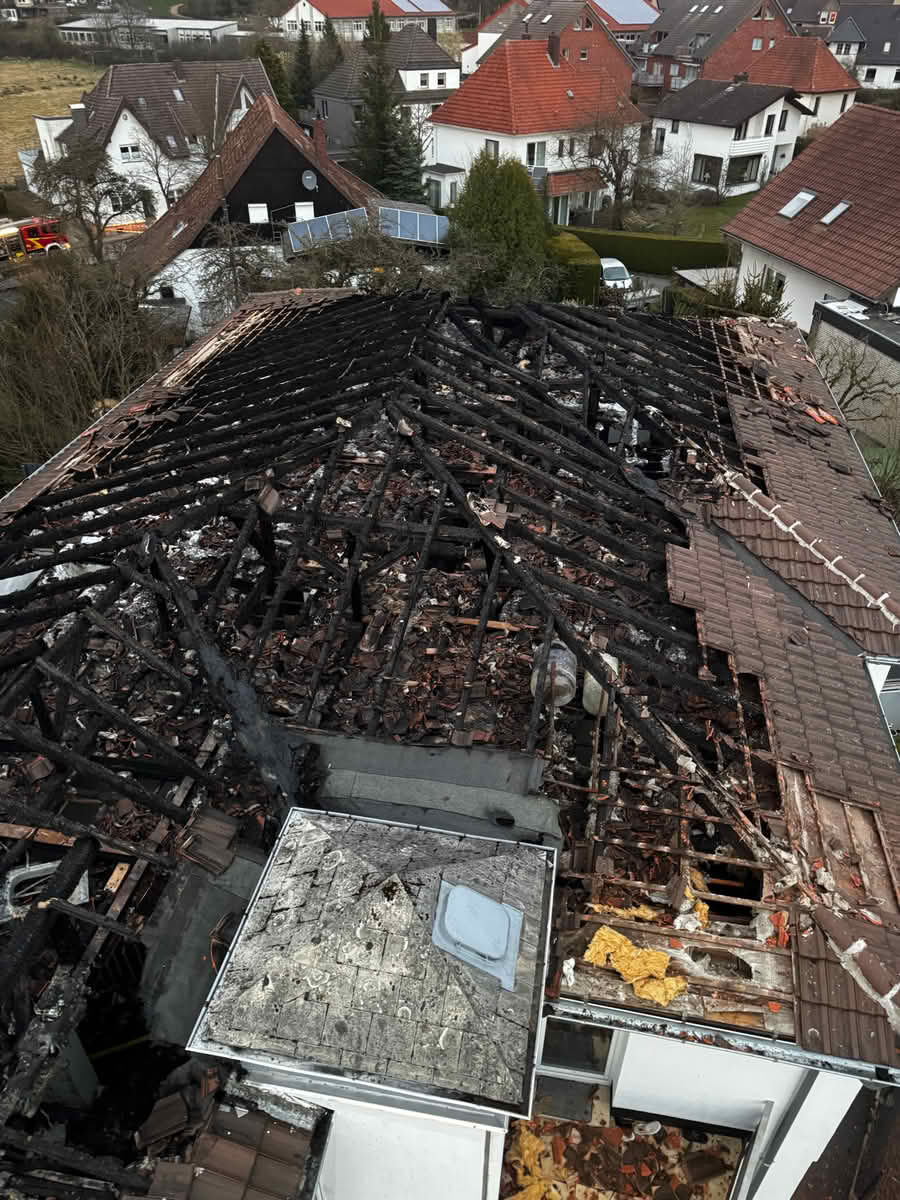 Ebenfalls auf den Weg machte sich der Atemschutz-Container des Kreises Lippe sowie die Drohnen-Einheit der Feuerwehr Detmold. Im weiteren Verlauf wurden zudem Fachberater des THW (Technischen Hilfswerk) zur Beurteilung der Statik und der Einsturzgefährdung hinzugezogen. Somit befanden sich zeitweise ca. 105 Einsatzkräfte an der Einsatzstelle.