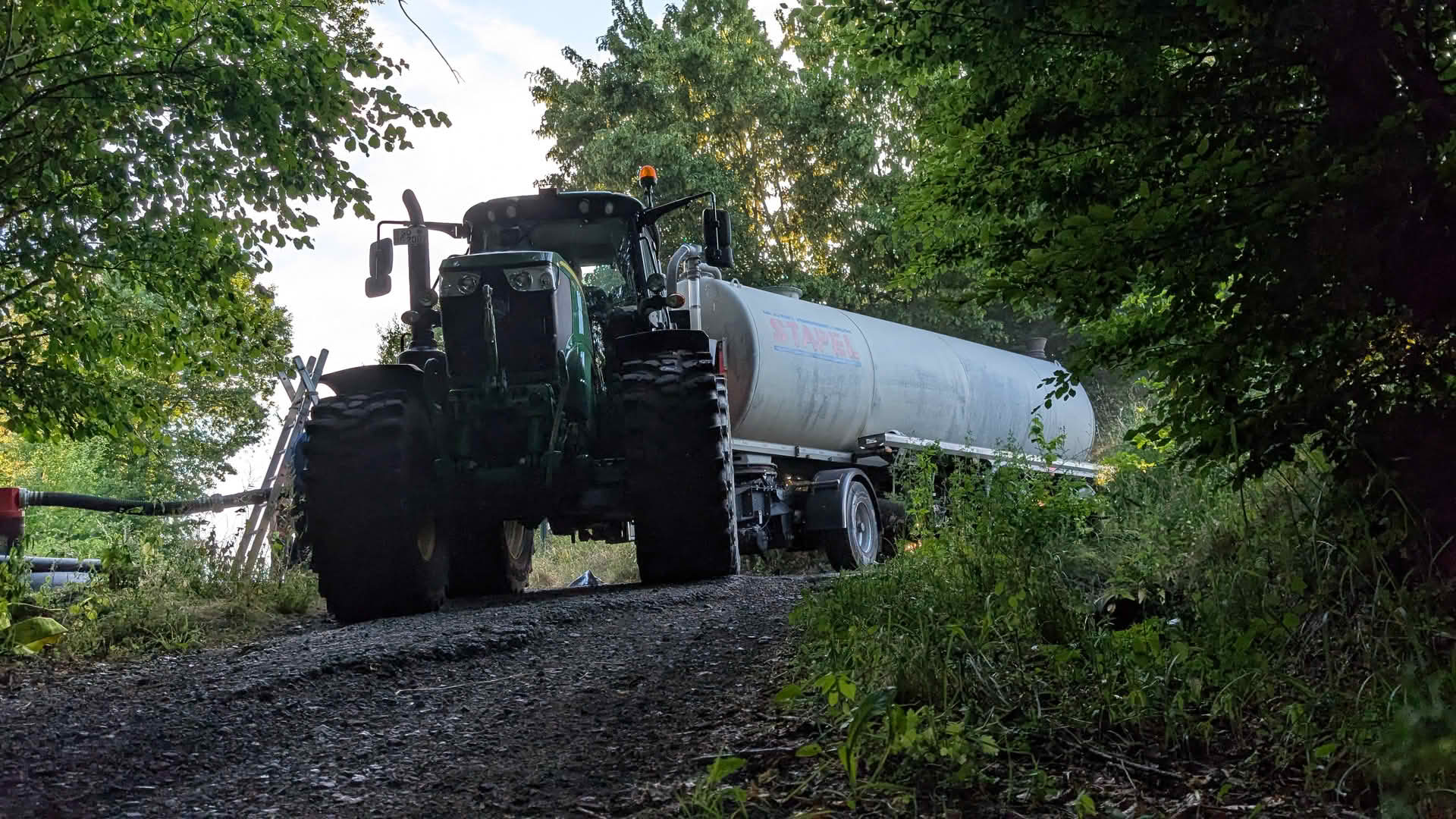 Um die Wasserlogistik zu schließen, setzte der Löschzug Neheim ein weiteres Fahrzeug an der Möhne ein, das die leeren Gülleanhänger der Landwirte mit Frischwasser befüllte – eine logistische Herausforderung, die erfolgreich gemeistert wurde.