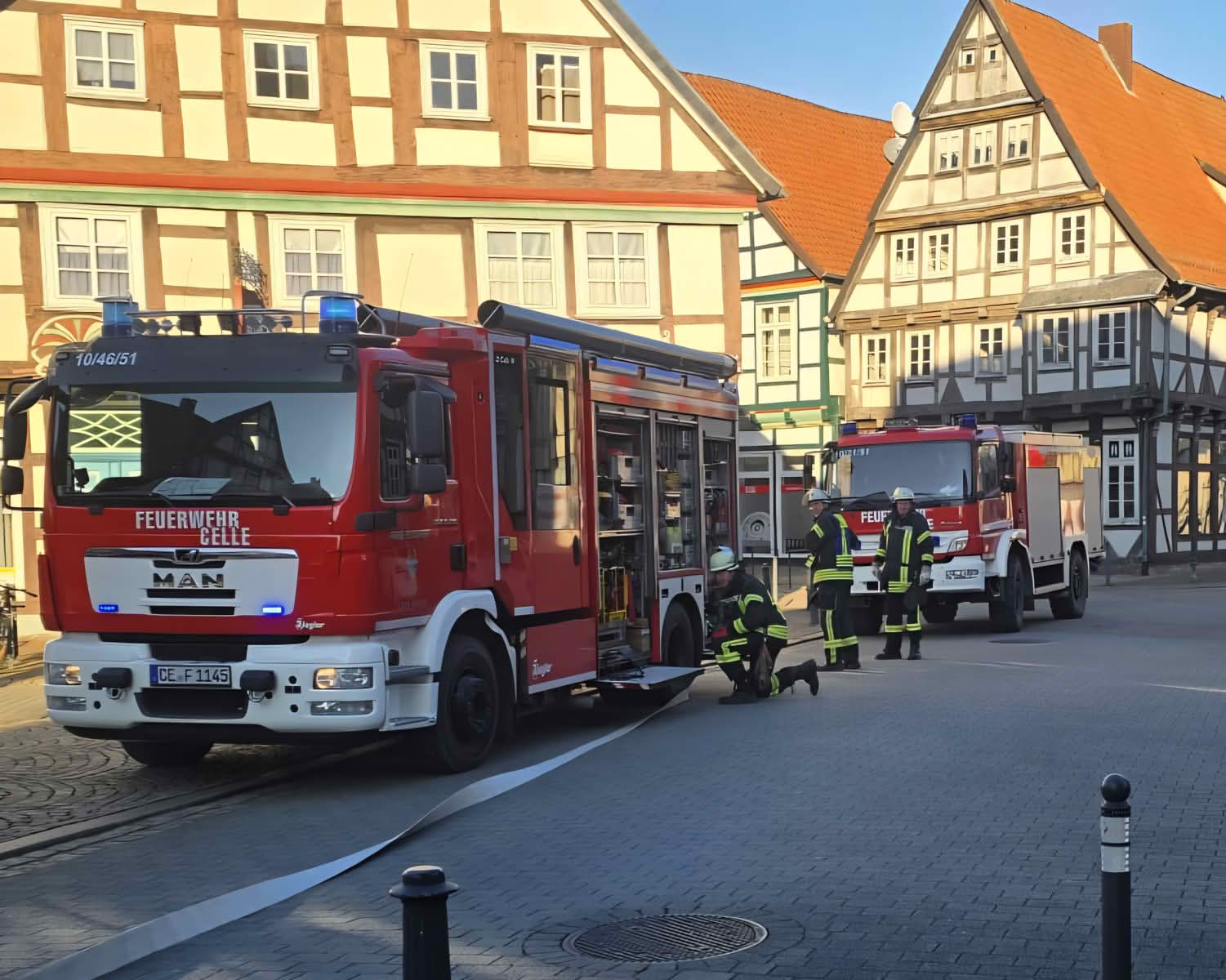 In den Mittagsstunden des ersten Weihnachtstages wurde die Feuerwehr Celle zu einer unklaren Rauchentwicklung auf den „Kleinen Plan“ im Herzen der historischen Fachwerkstadt alarmiert.