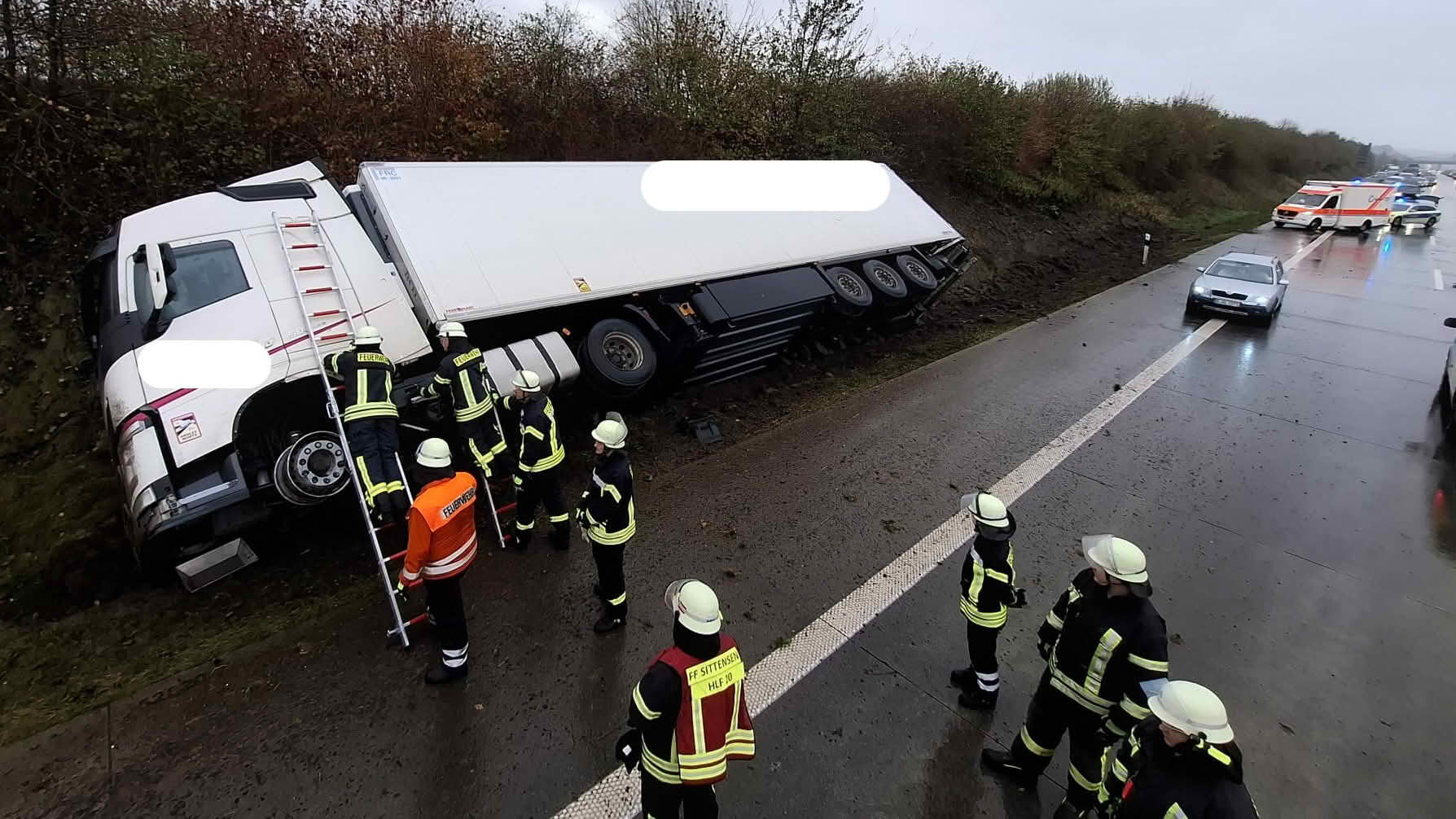 Verkehrsunfall auf der A1 (Foto: Feuerwehren der Samtgemeinde Sittensen)Verkehrsunfall auf der A1 (Foto: Feuerwehren der Samtgemeinde Sittensen)Verkehrsunfall auf der A1 (Foto: Feuerwehren der Samtgemeinde Sittensen)